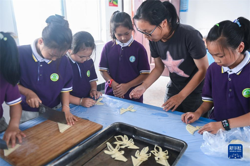 6月8日,學(xué)生們在傳統(tǒng)習(xí)俗課上學(xué)習(xí)做當(dāng)?shù)靥厣朗场溁ā?/span>
