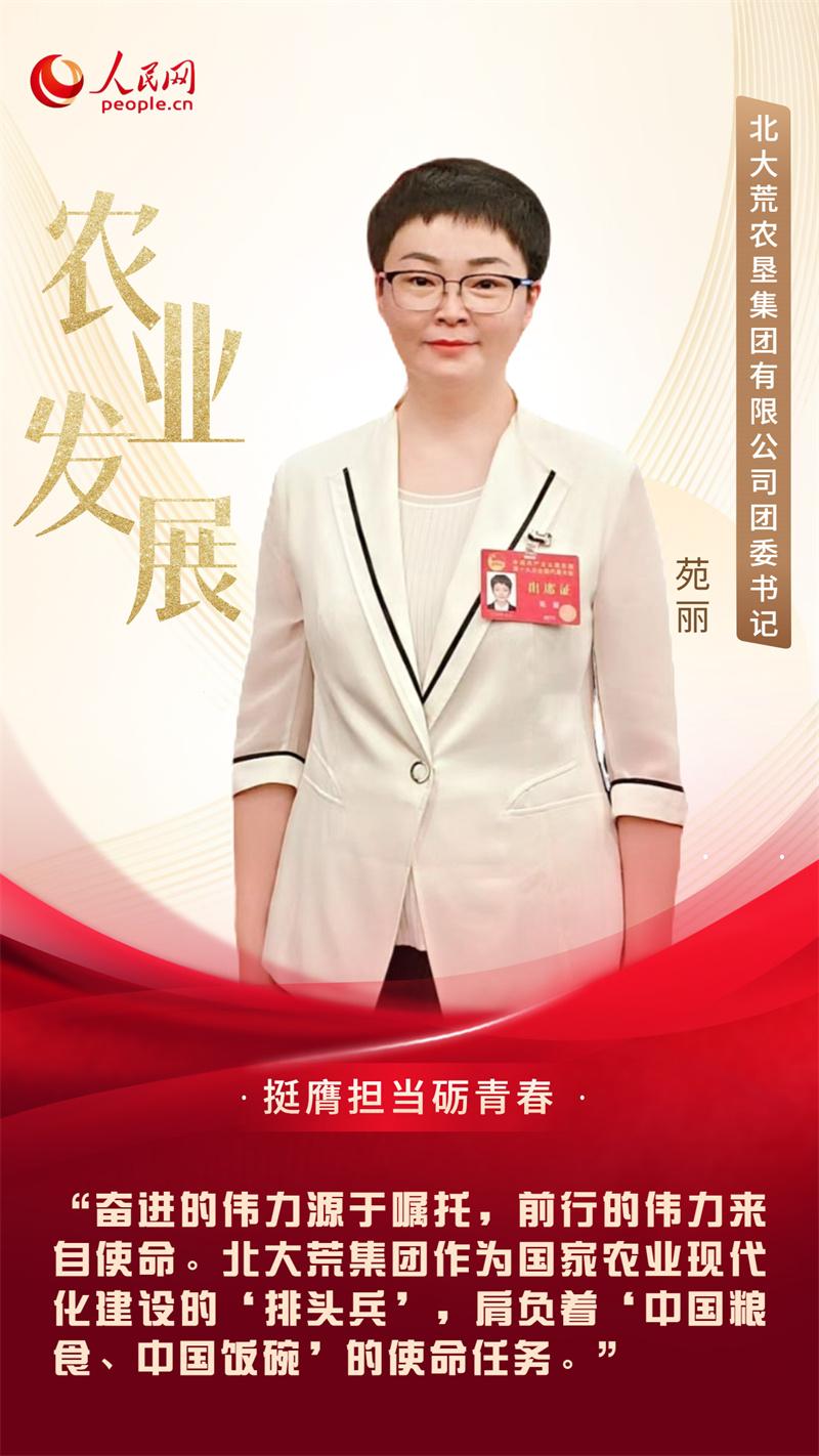 如今,苑麗已成長(zhǎng)為北大荒集團(tuán)一名優(yōu)秀的共青團(tuán)干部?!澳軌虼韽V大北大荒青年參加共青團(tuán)十九大這一青春盛會(huì),深感責(zé)任重大,使命光榮”,苑麗表示,中國(guó)農(nóng)墾事業(yè)是青年人施展才華抱負(fù)的廣闊舞臺(tái)。下一步,她將帶領(lǐng)廣大青年沖鋒在前、擔(dān)當(dāng)作為,通過為北大荒青年服務(wù)團(tuán)搭建助力鄉(xiāng)村振興工作平臺(tái),在全面推進(jìn)鄉(xiāng)村振興、加快推進(jìn)農(nóng)業(yè)農(nóng)村現(xiàn)代化進(jìn)程中建功立業(yè)。