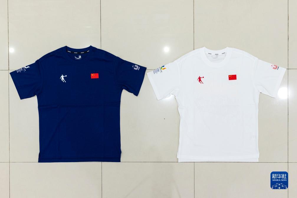 這是7月24日拍攝的第31屆世界大學生夏季運動會中國代表團成員配發(fā)裝備中的功能短T恤衫。新華社記者 沈伯韓 攝