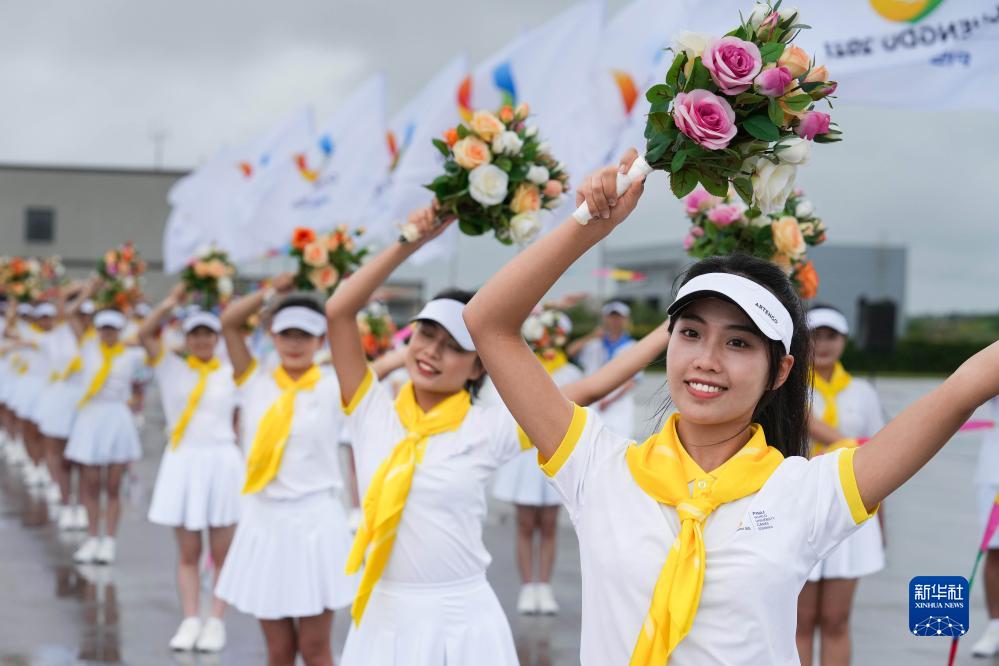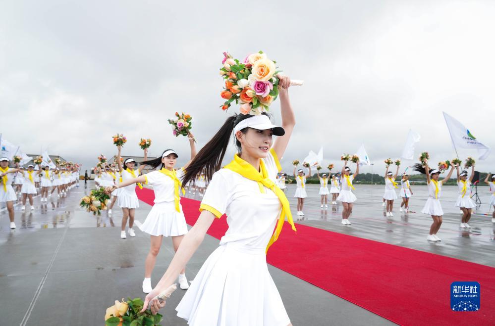 7月27日下午,來華出席成都大運(yùn)會開幕式并訪問的圭亞那總統(tǒng)阿里抵達(dá)四川省成都市。這是歡迎儀式現(xiàn)場。