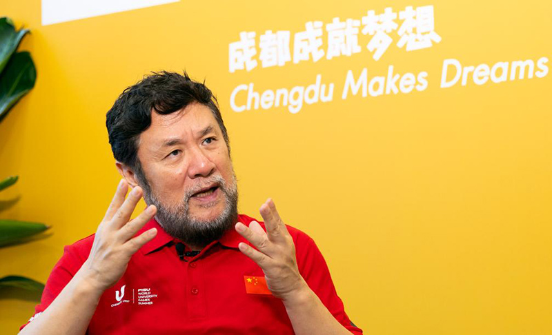 這是7月13日拍攝的成都第31屆世界大學(xué)生夏季運(yùn)動(dòng)會(huì)開(kāi)幕式總導(dǎo)演陳維亞在接受采訪。 新華社記者 沈伯韓 攝