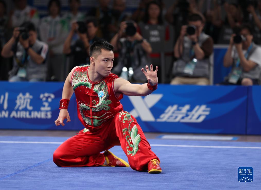 新華社成都7月29日電 29日,成都大運會武術項目男子南拳比賽中,中國選手曹茂園奪冠。這是本屆大運會的首金,也是中國大學生體育代表團的首金。