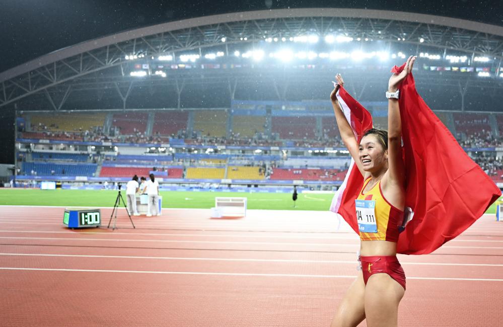 8月1日,夏雨雨在比賽后慶祝。新華社記者王曦?cái)z