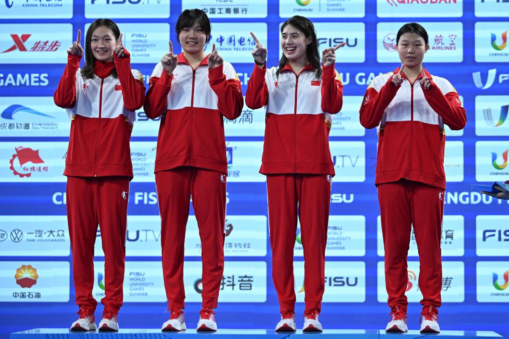 從日本福岡世錦賽凱旋的世界“蛙王”覃海洋和“蝶后”張雨霏當(dāng)天凌晨才到成都,隨即刷新男子100米蛙泳和女子50米蝶泳的賽會(huì)紀(jì)錄。張雨霏還率領(lǐng)中國隊(duì)以3分37秒51的成績創(chuàng)造了女子4x100米自由泳接力賽會(huì)紀(jì)錄,開啟成都大運(yùn)會(huì)游泳奪金之旅。