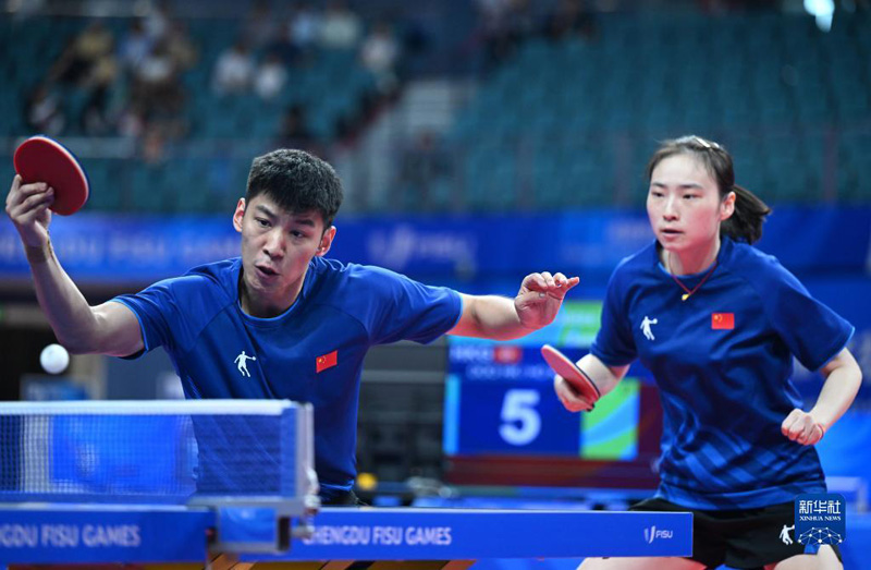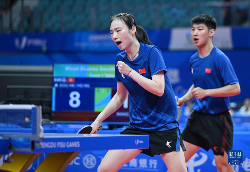 當日,在成都舉行的第31屆世界大學生夏季運動會乒乓球比賽混合雙打半決賽中,中國組合薛飛/王曉彤以4比0戰(zhàn)勝中國香港組合何鈞杰/杜凱琹,晉級決賽。