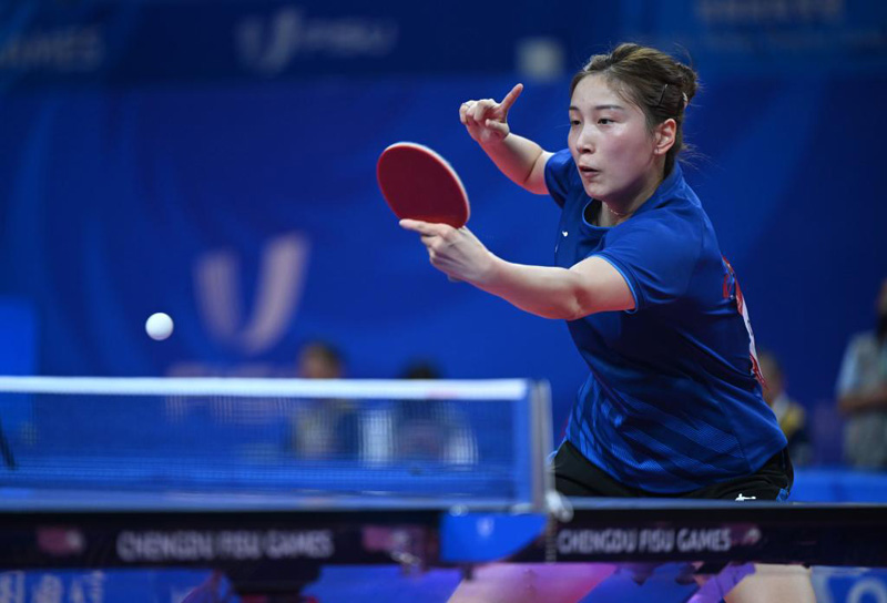 新華社成都8月5日電(記者楊帆、羅羽)5日,成都大運(yùn)會乒乓球項(xiàng)目迎來收官日。女單決賽中國隊(duì)錢天一苦戰(zhàn)七局戰(zhàn)勝日本隊(duì)出澤杏佳摘金,男單決賽中國隊(duì)周愷戰(zhàn)勝隊(duì)友徐瑛彬奪冠。