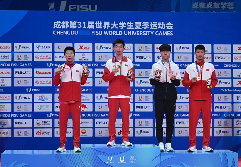 至此,本屆大運(yùn)會乒乓球項(xiàng)目在成都市高新體育中心體育館完賽,8天時(shí)間內(nèi)共產(chǎn)生7枚金牌。