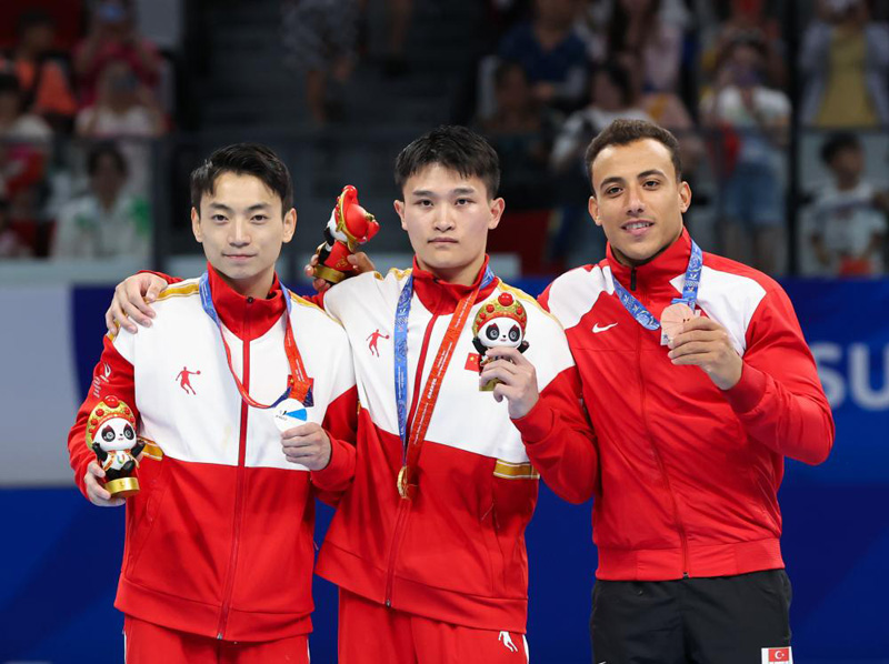 東京奧運會銀牌得主、中國臺北選手李智凱收獲鞍馬金牌,實現(xiàn)大運會鞍馬“三連冠”?!斑@是我的最后一屆世界大學生運動會,能夠在這次把自己的難度分升到6.5分,對我來說是一個突破與成長,很開心能完成這樣的目標?!彼f。