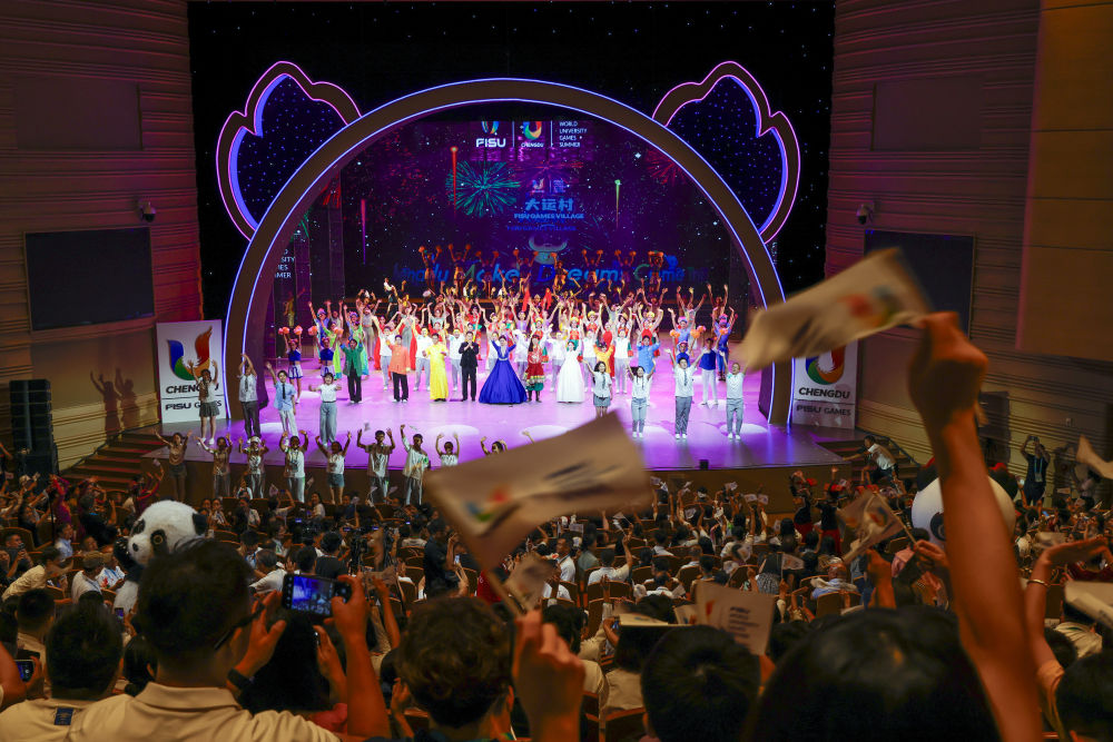 成都大運(yùn)村以“建改結(jié)合”方式全面融入成都大學(xué),該校校園在大運(yùn)會期間成為來自世界各地學(xué)生運(yùn)動員的家。作為此次系列主題晚會的最后一場,《成就夢想》也是唯一一個全部由成都大學(xué)師生演出的主題晚會。