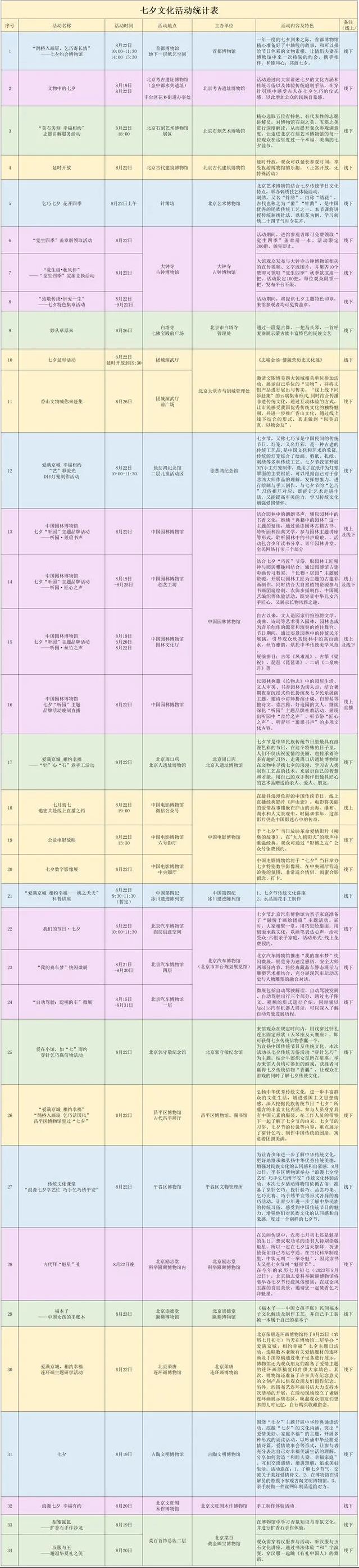 七夕節(jié)當天,首都博物館精心準備了中軸線的故事,以及可以描繪節(jié)日色彩的文物素模,邀請情侶、夫妻在博物館中來一次特別的約會,共同品味文物故事,參與手工互動體驗。北京藝術(shù)博物館將舉辦“乞巧七夕 花開四季”刺繡技藝體驗活動,觀眾可以在萬壽寺的古建筑中,學(xué)習(xí)刺繡二十四節(jié)氣時令花卉,感受七夕傳統(tǒng)習(xí)俗。北京周口店北京人遺址博物館將舉辦“‘針’心‘石’意手工活動”,觀眾可以在文物中尋找七夕的浪漫,學(xué)習(xí)古人類制作工藝品的技術(shù),為親友送上一件手作藝術(shù)品。