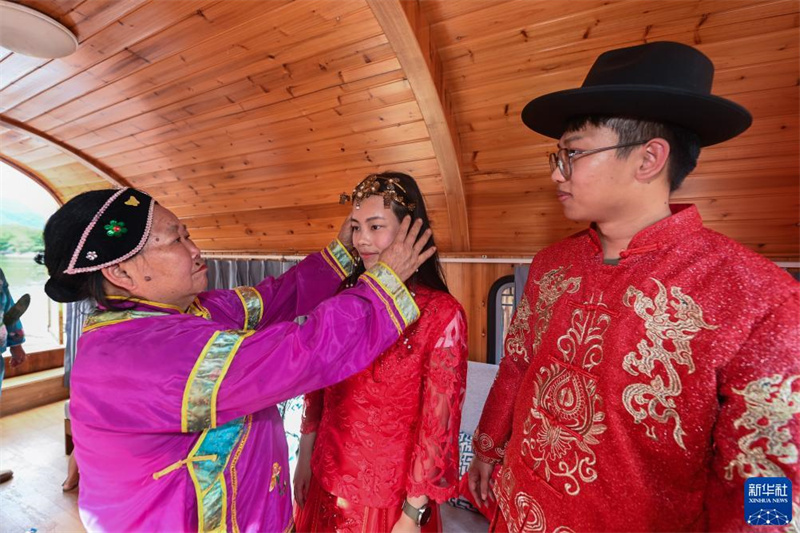 8月19日,青年情侶在三都鎮(zhèn)三都漁村體驗(yàn)水上婚禮。