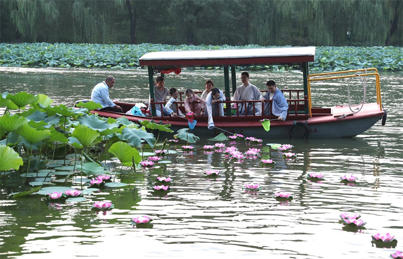 8月20日,游客放荷燈寄托對美好生活的祝愿。中國日報(bào)記者 鄒紅 攝