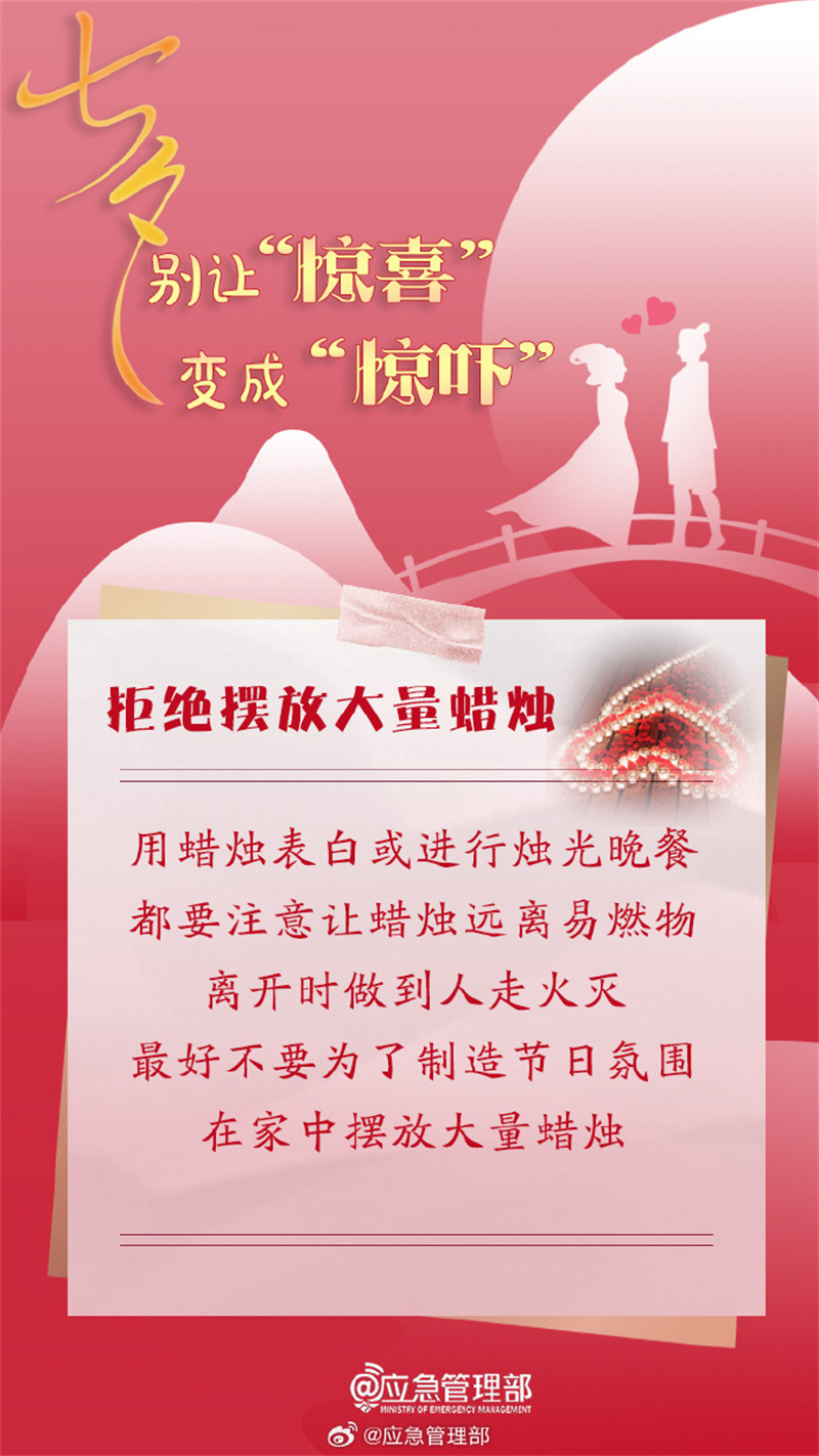 你打算怎么過七夕呢?燭光晚餐、蠟燭表白、燃放煙花……不論如何,在享受浪漫的同時,千萬別忘了消防安全~快和你的愛人一起了解吧↓↓