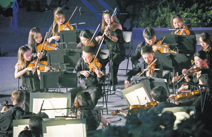 8月22日晚,“因?yàn)閻勰恪呦χ黝}交響樂之夜”活動(dòng)在西安昆明池·七夕公園舉行。 陜西大劇院供圖