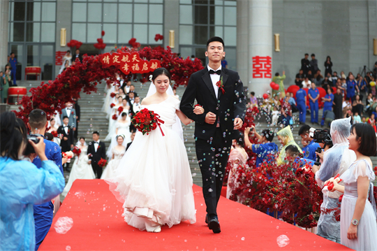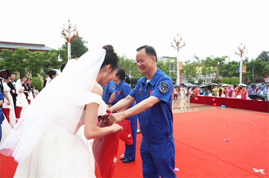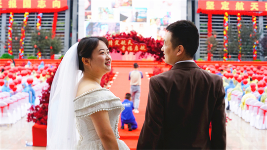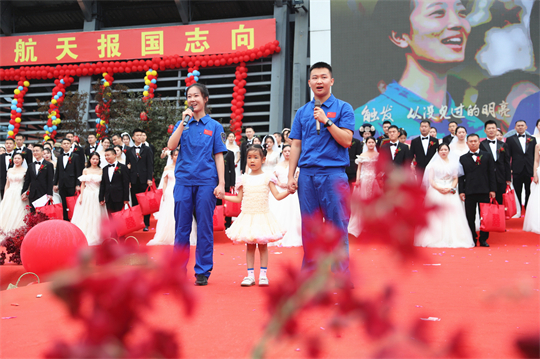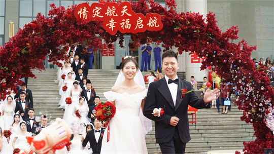 一項項儀式,將集體婚禮活動引向高潮。此次參加集體婚禮的航天工作者大多來自一線崗位,他們常年執(zhí)行高密度航天發(fā)射任務(wù),缺少時間與愛人團(tuán)聚,有的婚期更是一再推遲。中心為一對對新人搭建起盛大的舞臺,舉辦隆重的集體婚禮,讓祖國見證他們的幸福與榮光。