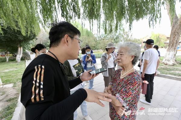 8月30日,全媒體報道團隊記者采訪在哈密河國家濕地公園漫步的市民。天山網(wǎng)-新疆日報記者 李瑞攝
