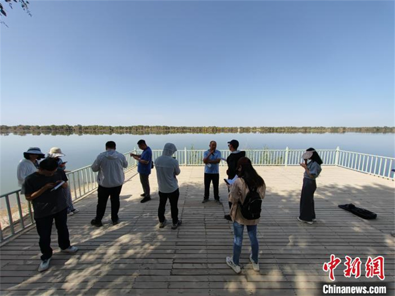 9月1日,“四季看新疆第二季”之“沿著河湖看新疆”主題采訪活動采訪團走進(jìn)巴音郭楞蒙古自治州尉犁縣羅布淖爾國家濕地公園進(jìn)行采訪。(中新網(wǎng)記者 王小軍 攝)