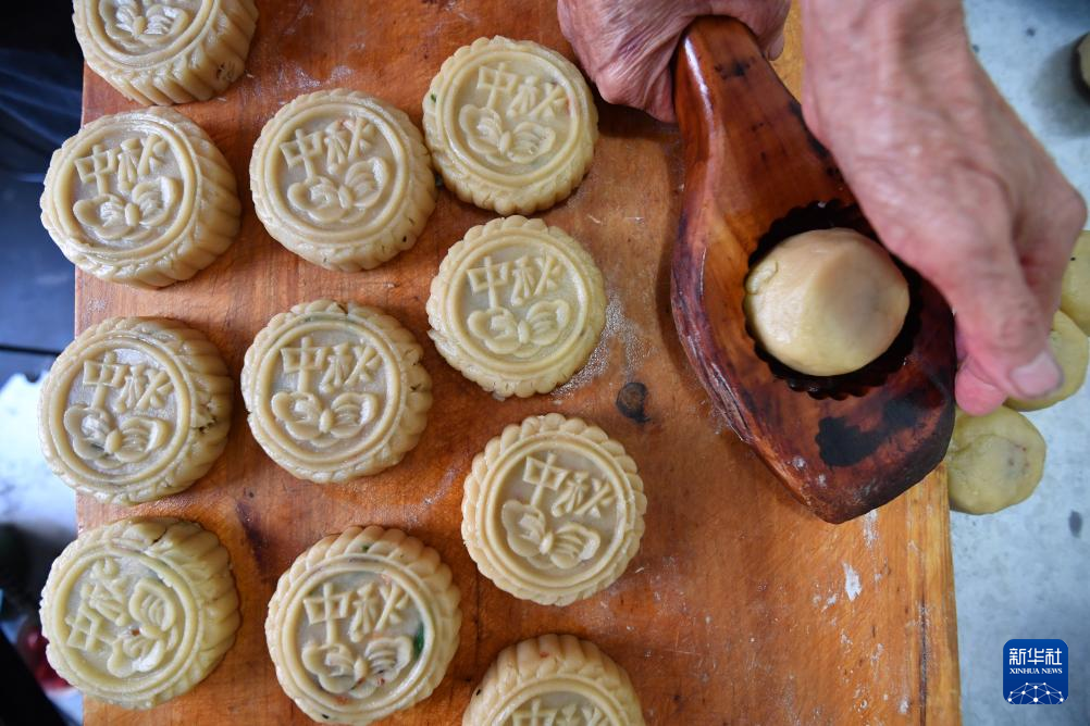 9月20日,在云南省馬關(guān)縣一家食品加工企業(yè),工人制作傳統(tǒng)月餅。