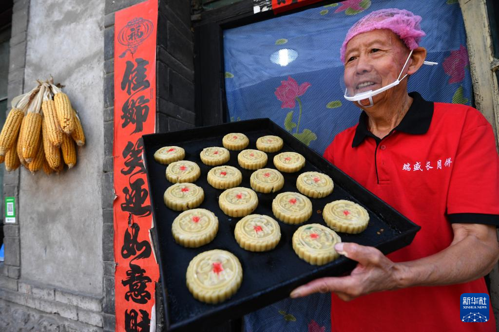 9月20日,在河北省石家莊市井陘縣天長(zhǎng)鎮(zhèn)的一家手工月餅作坊里,老師傅準(zhǔn)備烤制月餅。
