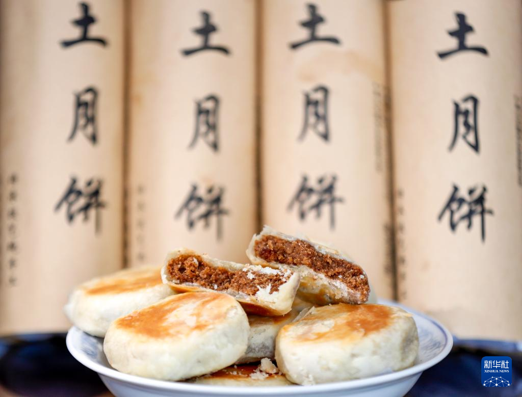 9月19日在安徽省黃山市徽州區(qū)澄塘村一家月餅作坊拍攝的火腿土月餅。