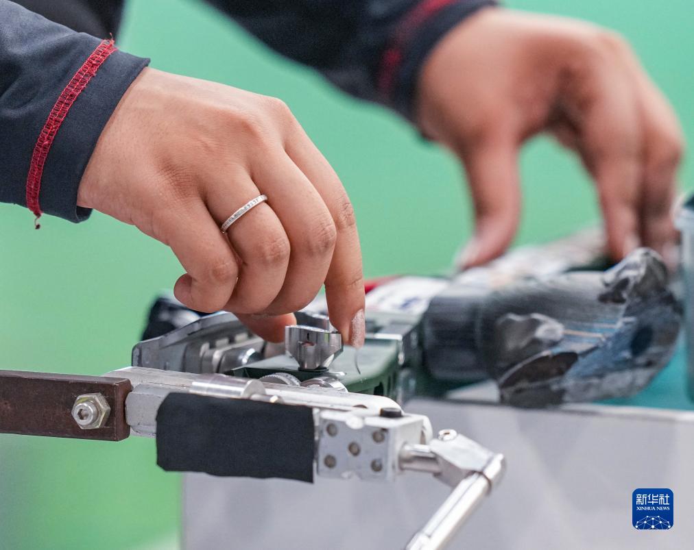 9月27日,印度隊(duì)選手希芙特·考爾·薩姆拉在比賽中調(diào)整槍械。