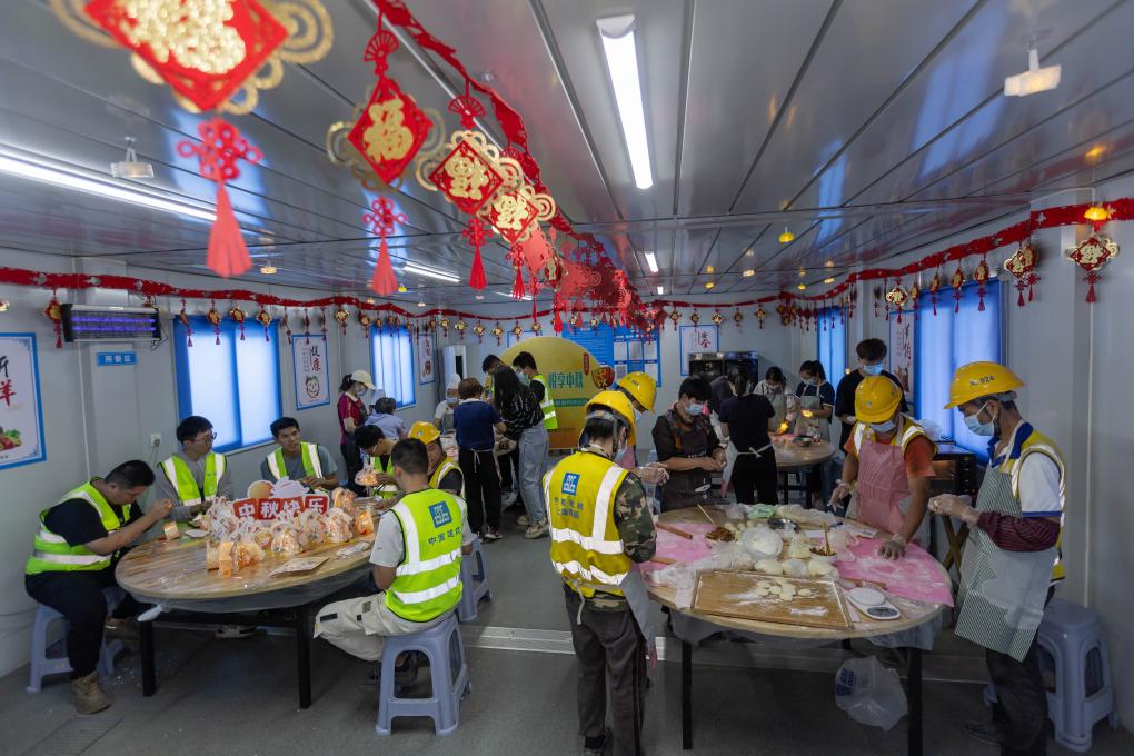 9月26日在項目工友服務站拍攝的迎中秋活動現(xiàn)場。