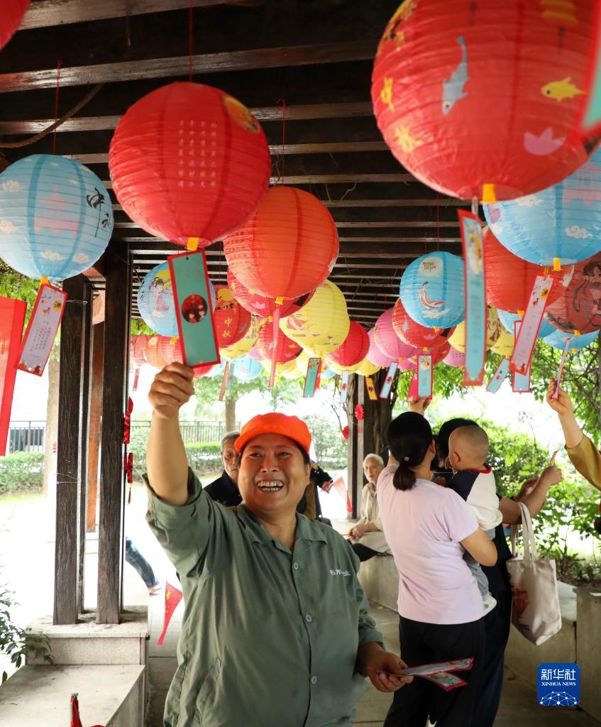9月26日,人們在安徽省合肥市肥西縣上派鎮(zhèn)潭沖社區(qū)猜燈謎。