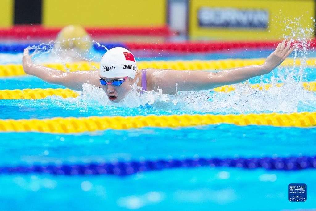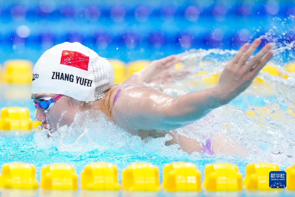 9月27日,中國隊選手張雨霏在決賽中。中國隊以3分37秒73的成績獲得該項比賽的冠軍,并打破亞洲紀錄。