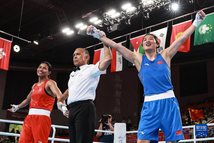 當日,在杭州亞運會拳擊項目女子75公斤級決賽中,中國選手李倩戰(zhàn)勝印度選手洛夫利娜·博爾戈哈因,獲得冠軍。
