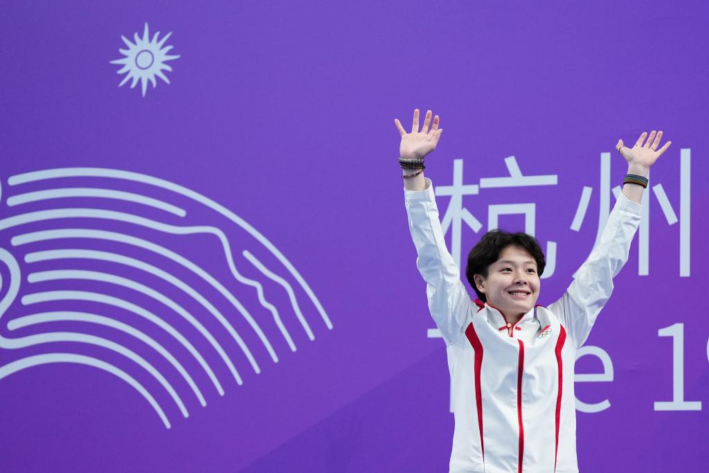 10月4日,冠軍陳藝文在頒獎儀式上。新華社記者杜宇攝