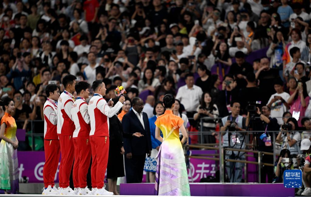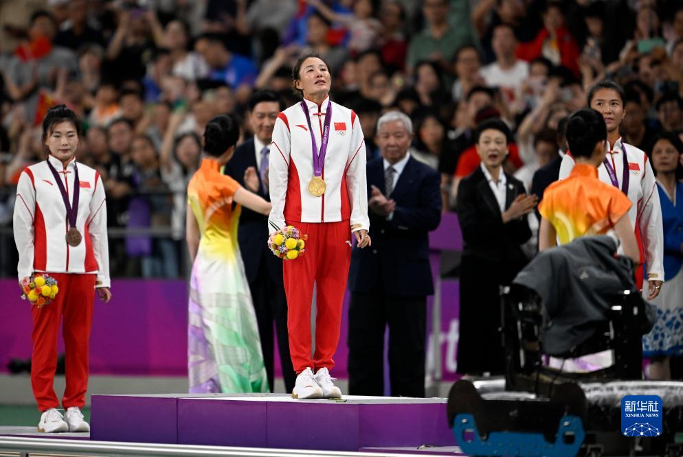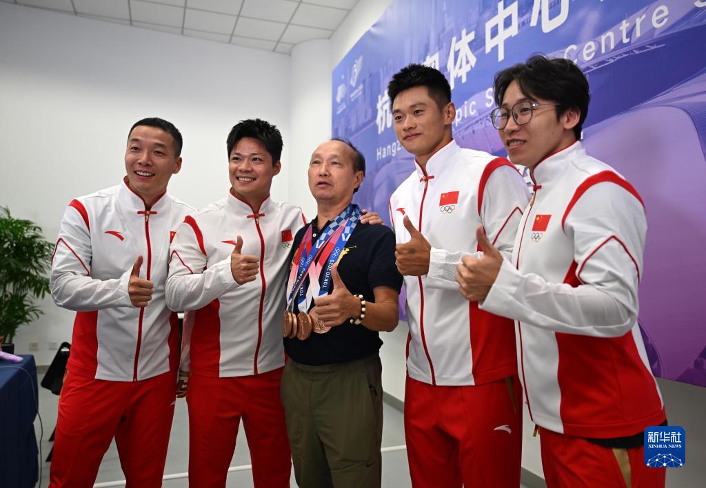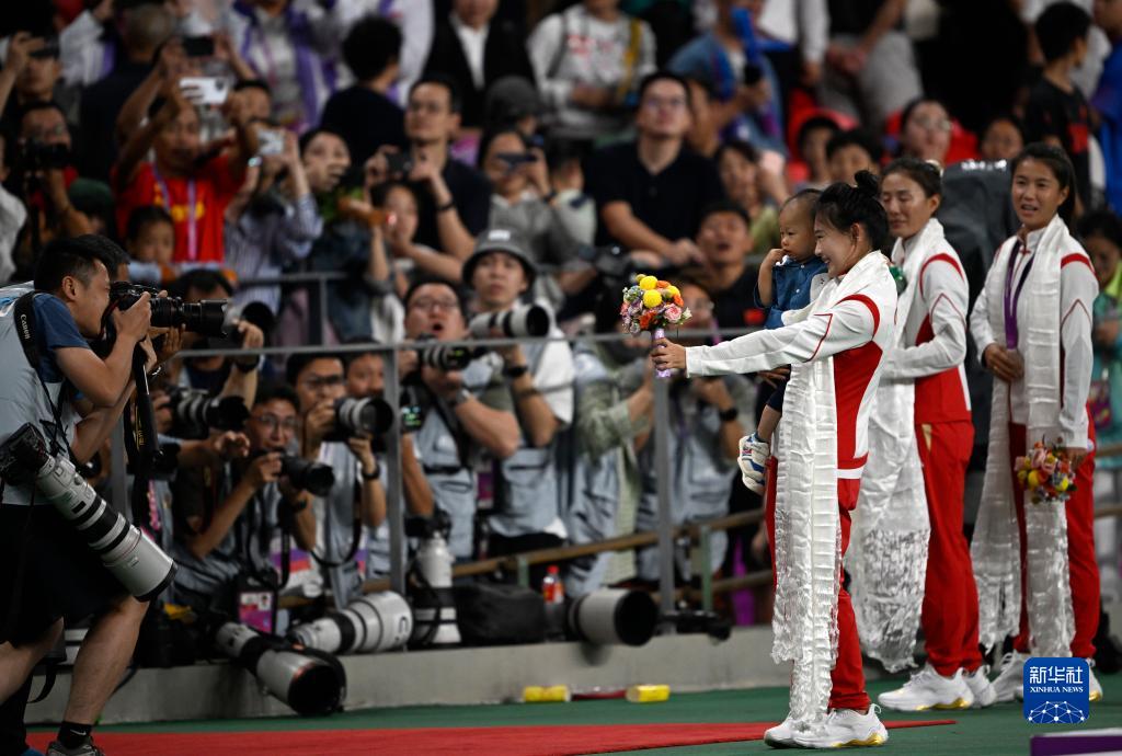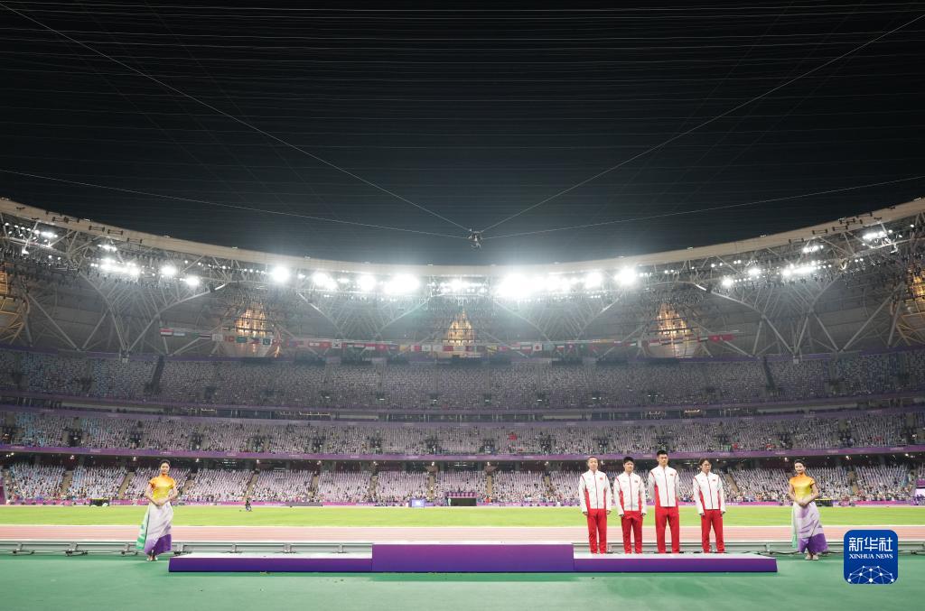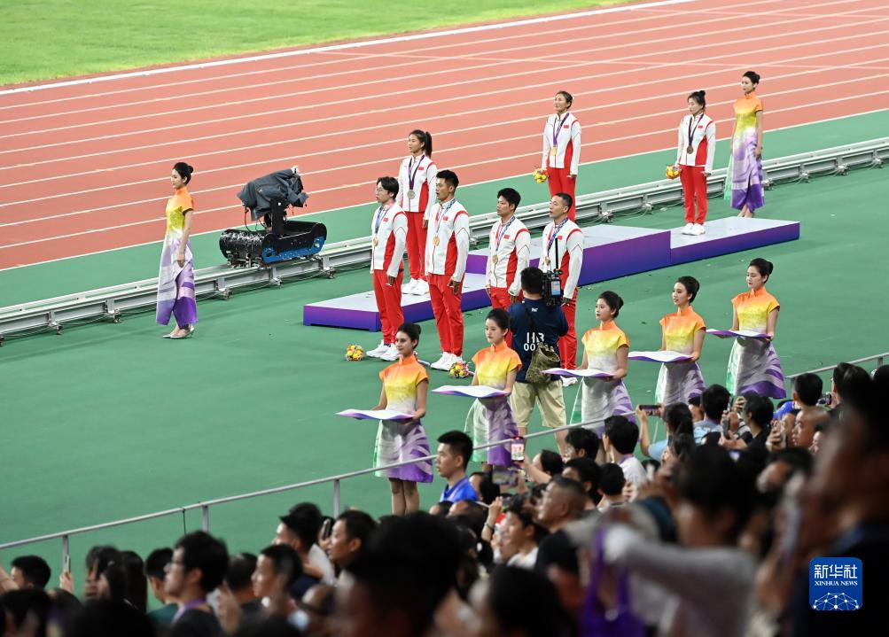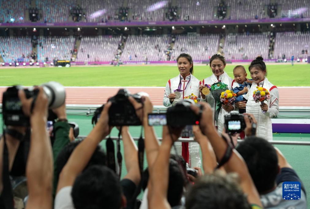 當晚,杭州亞運會田徑項目比賽結(jié)束后,中國奧委會在杭州奧體中心體育場舉行遞補奧運獎牌頒獎儀式,為遞補獲得東京奧運會男子4X100米接力銅牌的蘇炳添、謝震業(yè)、吳智強和湯星強與遞補獲得2012年倫敦奧運會女子20公里競走金、銀、銅牌的切陽什姐、劉虹、呂秀芝頒發(fā)獎牌。