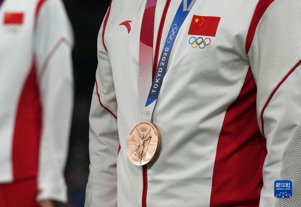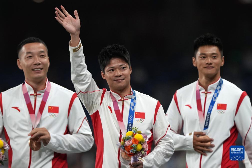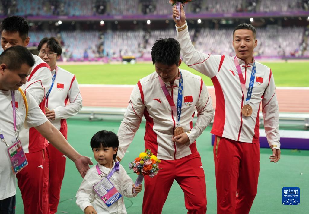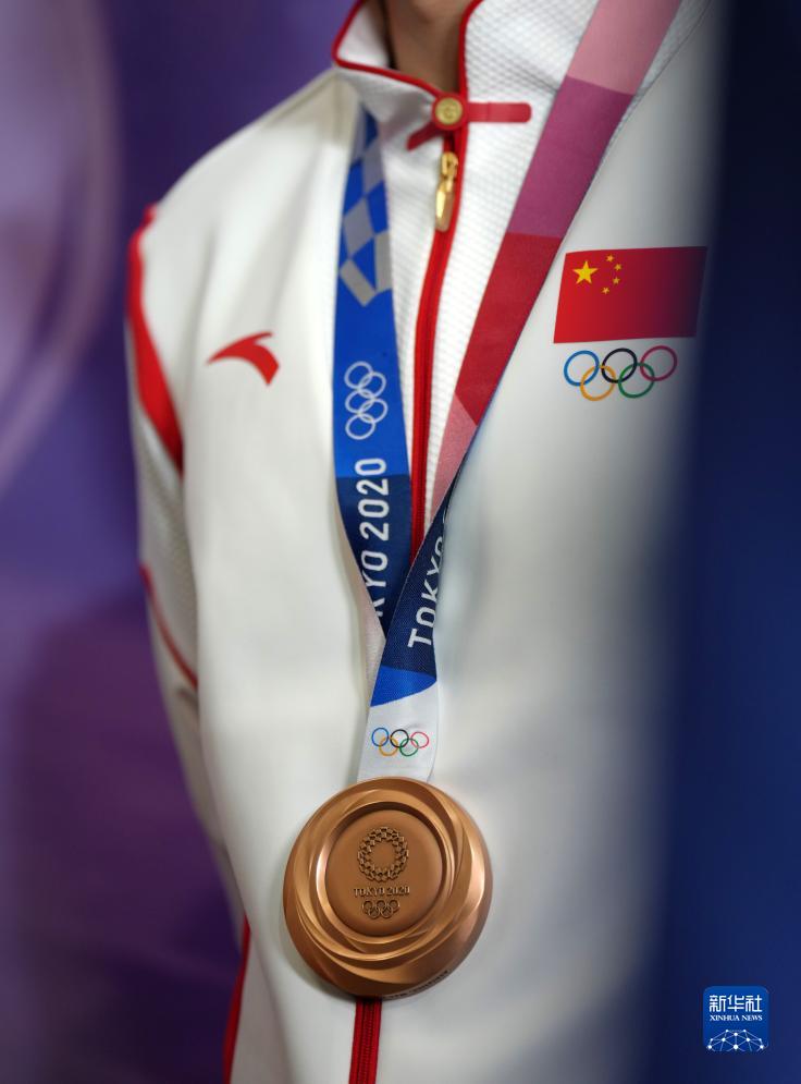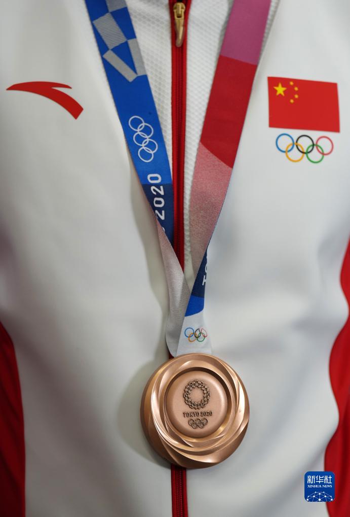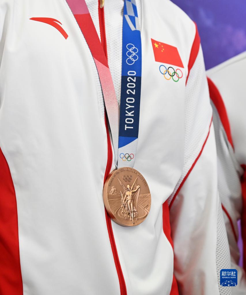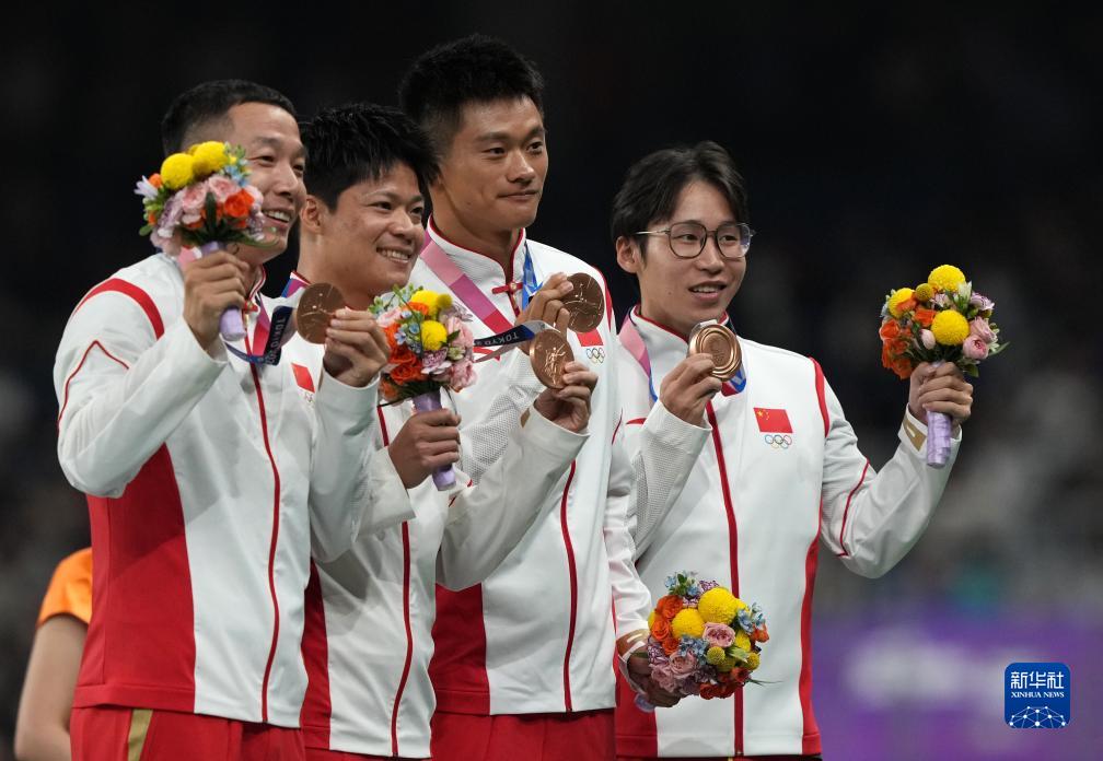 這是湯星強、謝震業(yè)、蘇炳添、吳智強遞補獲得的東京奧運會男子4X100米接力銅牌(10月4日攝)。