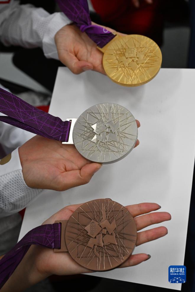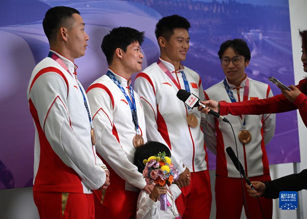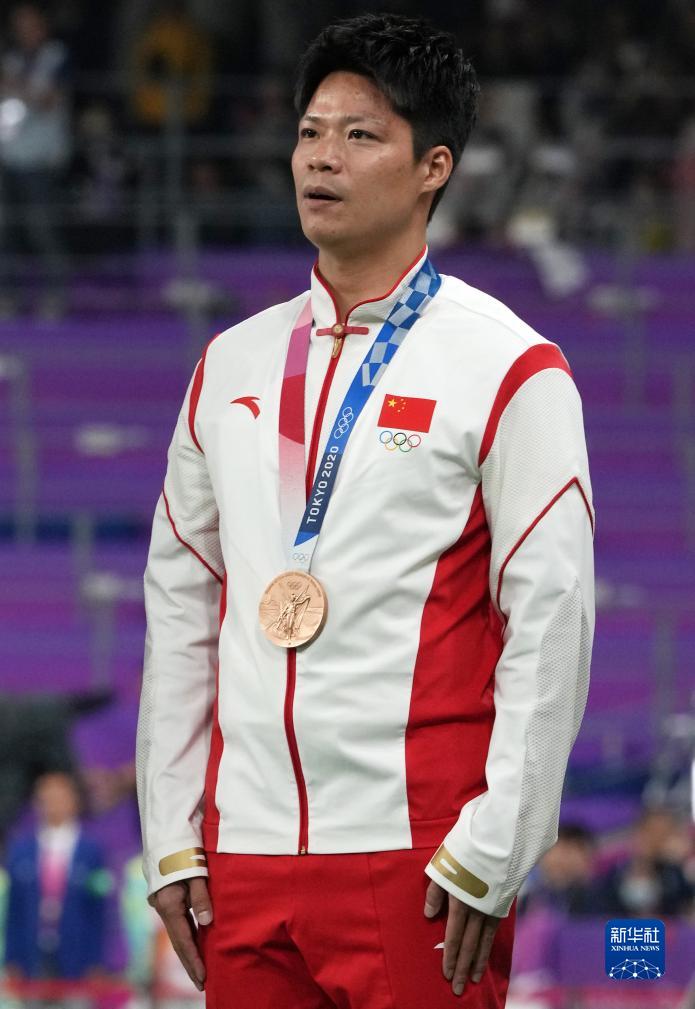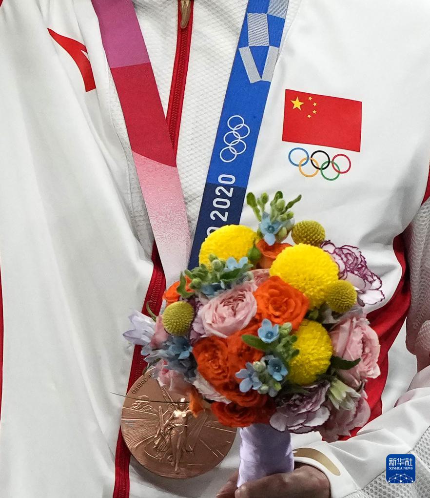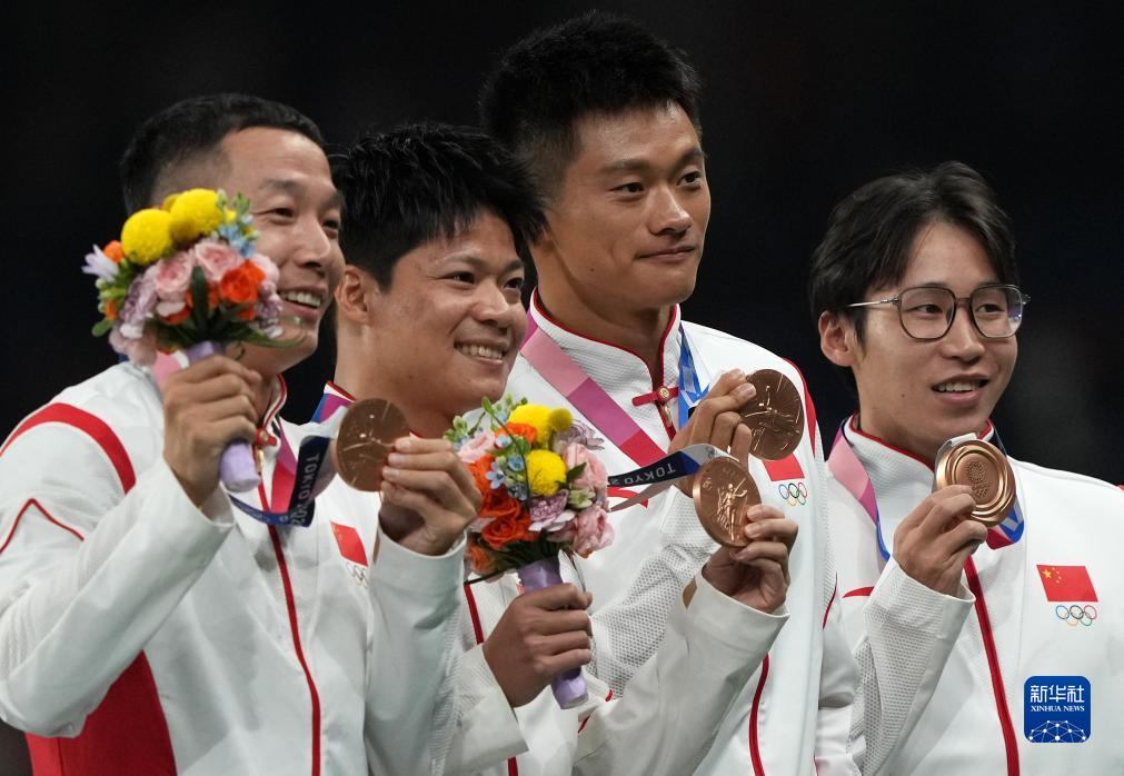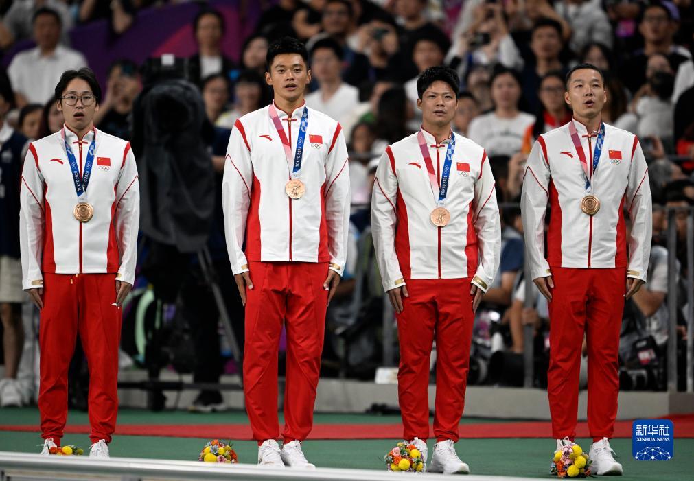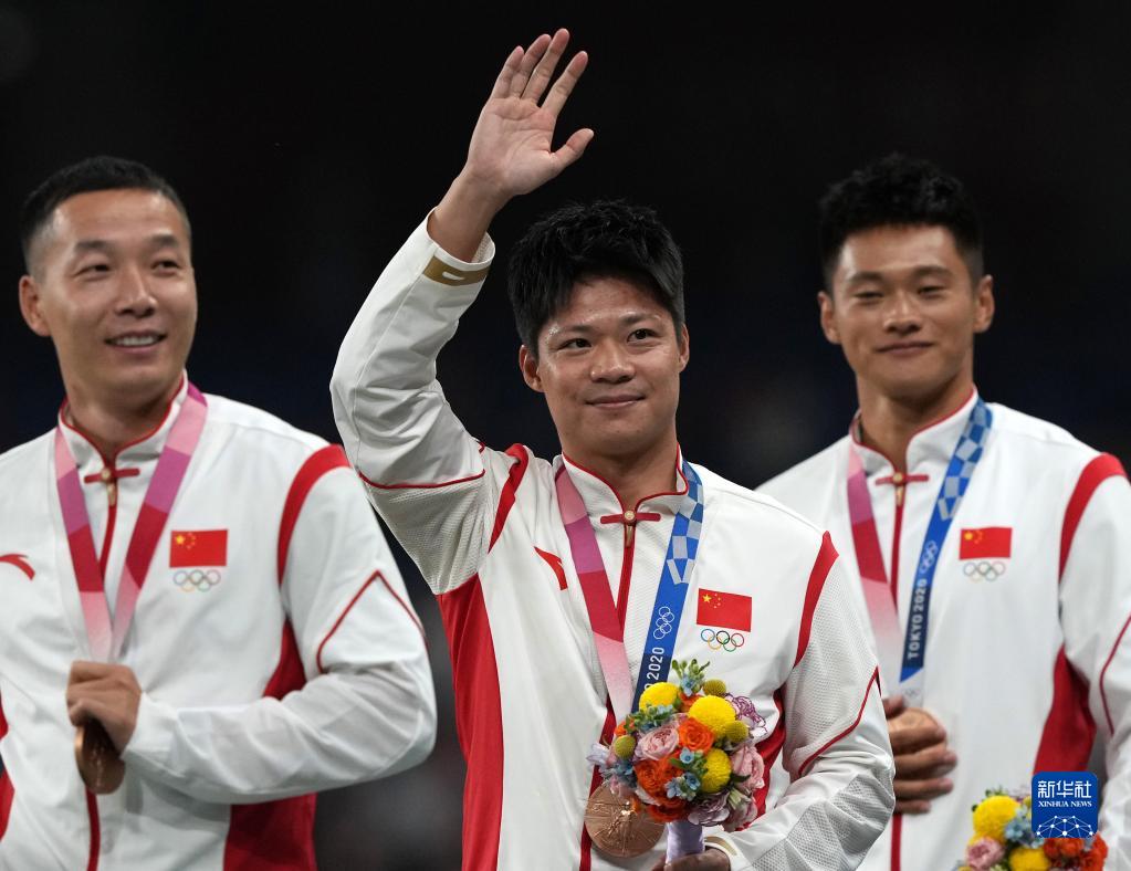 這是湯星強、謝震業(yè)、蘇炳添、吳智強遞補獲得的東京奧運會男子4X100米接力銅牌(10月4日攝)。