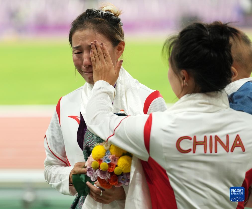 10月4日,切陽什姐(左)在頒獎儀式后落淚。