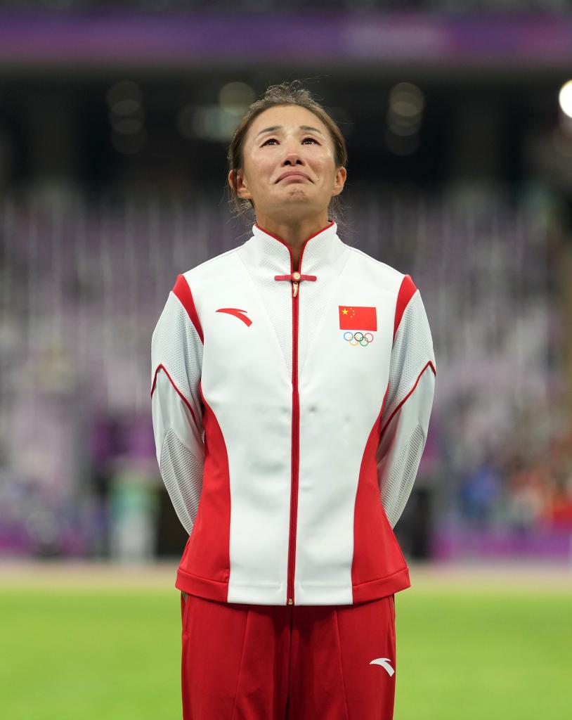 新華社杭州10月4日電(記者王浩明、吳俊寬、李典、陳晨)杭州奧林匹克體育中心體育場,萬人矚目,切陽什姐登上領(lǐng)獎臺,當國歌奏響,她再也抑制不住,淚水奪眶而出。