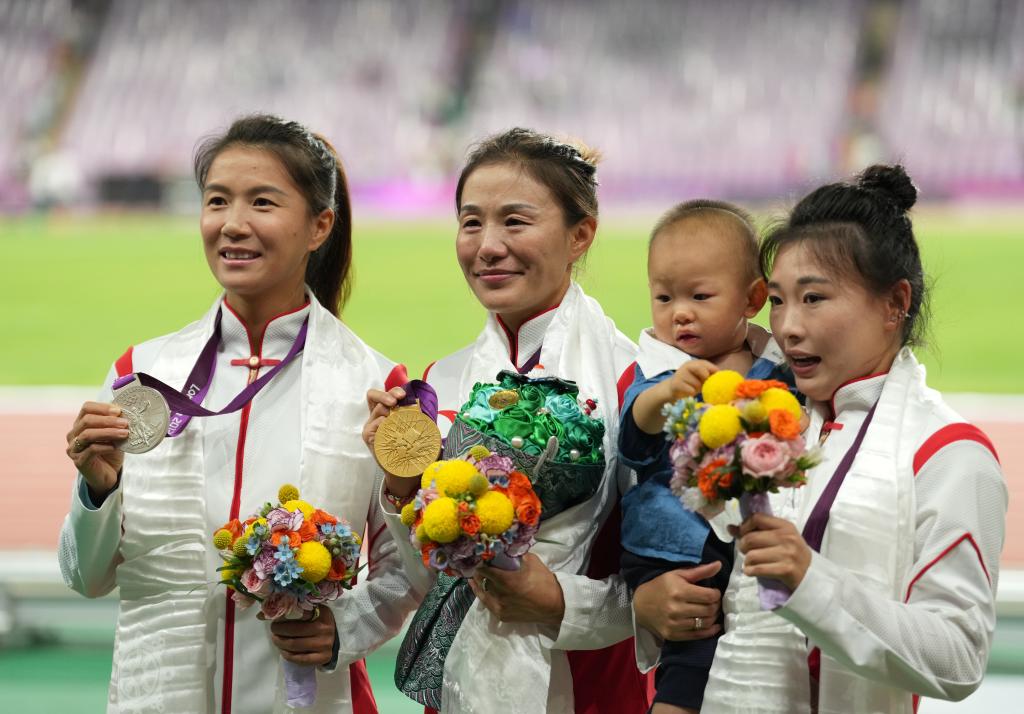 本次的補發(fā)儀式是由中國奧委會主辦,而在家門口的亞運會上舉行,意義則更加顯著——全場觀眾的熱烈歡呼聲中,七名運動員出場,頒獎儀式的所有流程一個不少,當國歌奏響,國旗升起,宛若回到了奧運賽場。