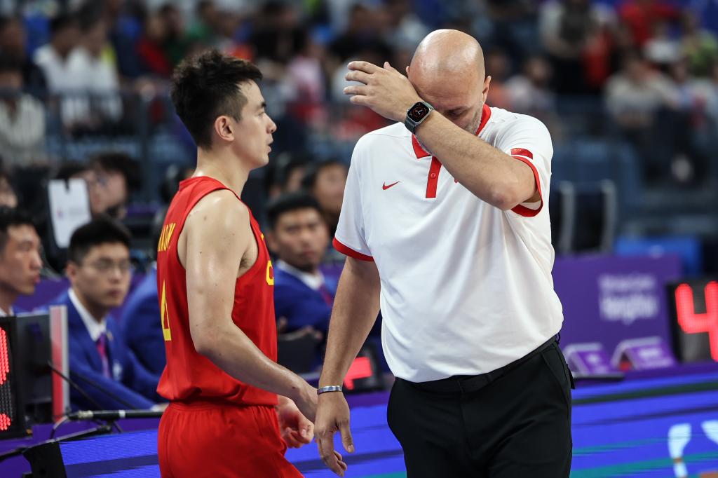 10月4日,中國(guó)隊(duì)主教練喬爾杰維奇(右)在比賽后。新華社記者 潘昱龍 攝