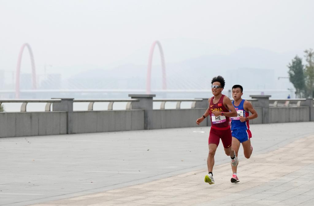 當(dāng)天上午7時,男子馬拉松比賽率先鳴槍。今年創(chuàng)造了全國紀(jì)錄的何杰攜手隊友楊紹輝出戰(zhàn),被寄予厚望。比賽30公里后,何杰、楊紹輝、朝鮮選手韓日龍等7人形成第一集團(tuán)。38公里后,何杰和韓日龍甩開大部隊,展開了激烈競逐。到40公里時,何杰發(fā)力,開始獨(dú)自領(lǐng)跑。最終,他以2小時13分02秒的成績奪冠,韓日龍、楊紹輝分獲亞軍和季軍。