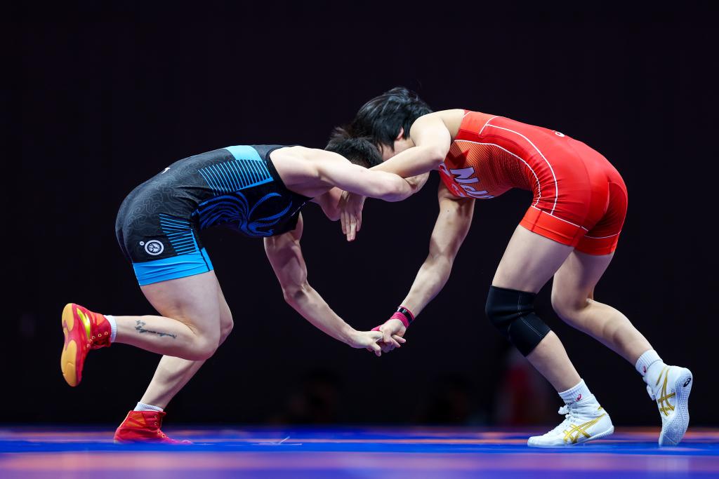 57公斤級(jí)比賽中,20歲的中國(guó)小將洪可新開(kāi)局表現(xiàn)搶眼,接連兩場(chǎng)雙肩著地勝利先后速勝柬埔寨選手和哈薩克斯坦選手。但在半決賽她不敵4年未在國(guó)際賽場(chǎng)現(xiàn)身的朝鮮選手鄭忍純,之后在銅牌爭(zhēng)奪賽以技術(shù)優(yōu)勢(shì)擊敗了蒙古國(guó)選手達(dá)瓦奇梅格。2022年世錦賽該級(jí)別冠軍、日本選手櫻井津久美在決賽中上演大逆轉(zhuǎn)戰(zhàn)勝鄭忍純奪金。