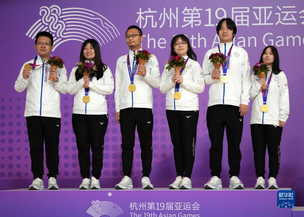10月6日,獲得金牌的中國(guó)臺(tái)北隊(duì)在頒獎(jiǎng)儀式上。