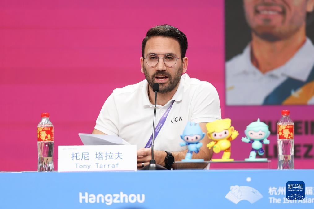 10月7日,亞奧理事會(huì)運(yùn)動(dòng)員發(fā)展部主管托尼·塔拉夫在新聞發(fā)布會(huì)現(xiàn)場發(fā)言。
