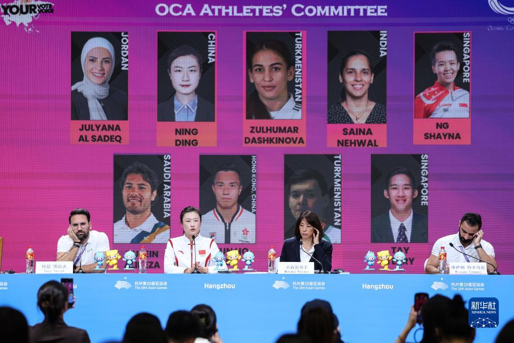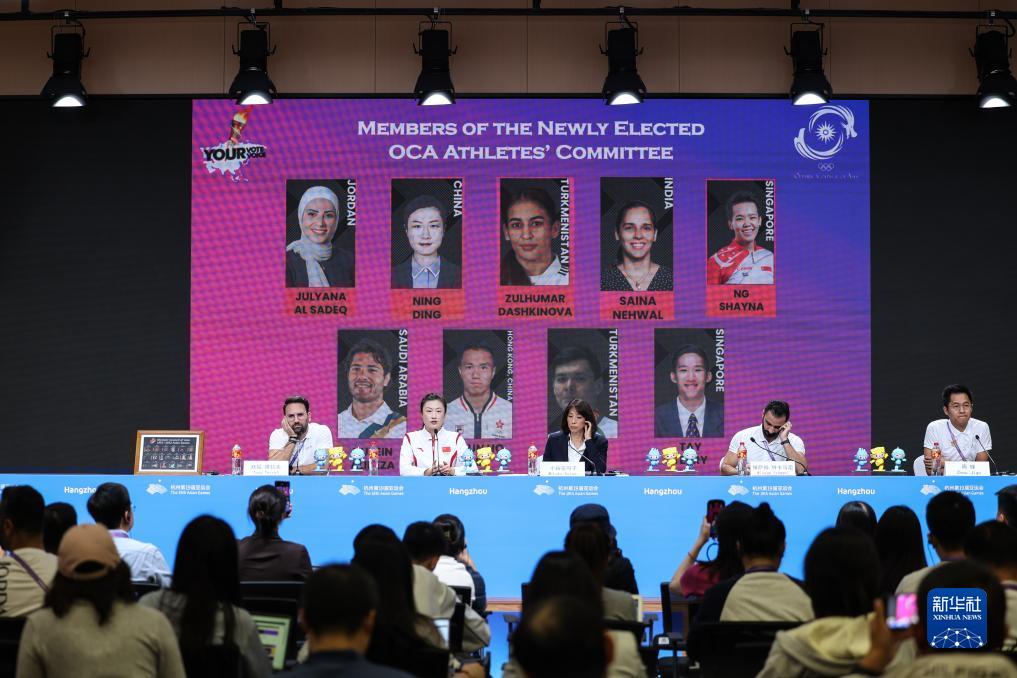 當(dāng)日,亞奧理事會(huì)運(yùn)動(dòng)員委員會(huì)選舉結(jié)果新聞發(fā)布會(huì)在杭州主媒體中心舉行。奧運(yùn)冠軍、中國女子乒乓球名將丁寧當(dāng)選亞奧理事會(huì)運(yùn)動(dòng)員委員會(huì)委員。