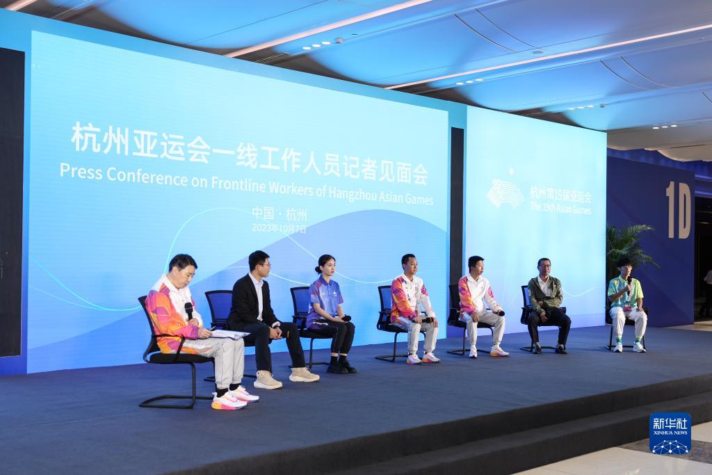 當日,杭州亞運會一線工作人員記者見面會在杭州主媒體中心舉行。