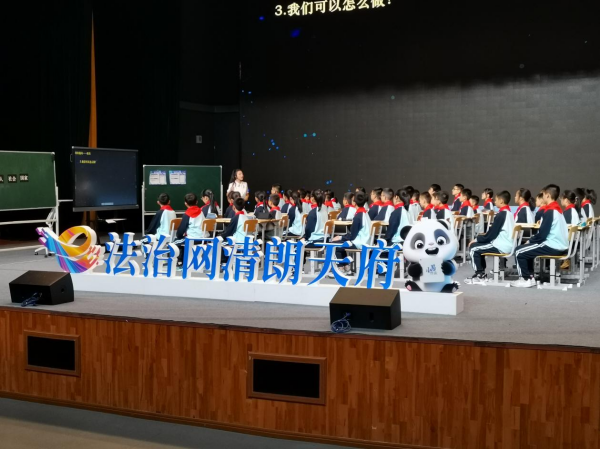 當(dāng)天下午,在該校音樂廳里,“天四e時(shí)代”網(wǎng)絡(luò)法治教育10月特色課程正在開展,“正在舉辦的是特色課程《身心健康最重要,虛擬空間莫沉迷》?!惫ぷ魅藛T表示,會(huì)在不同月份開展不同主題的網(wǎng)絡(luò)法治特色課程。