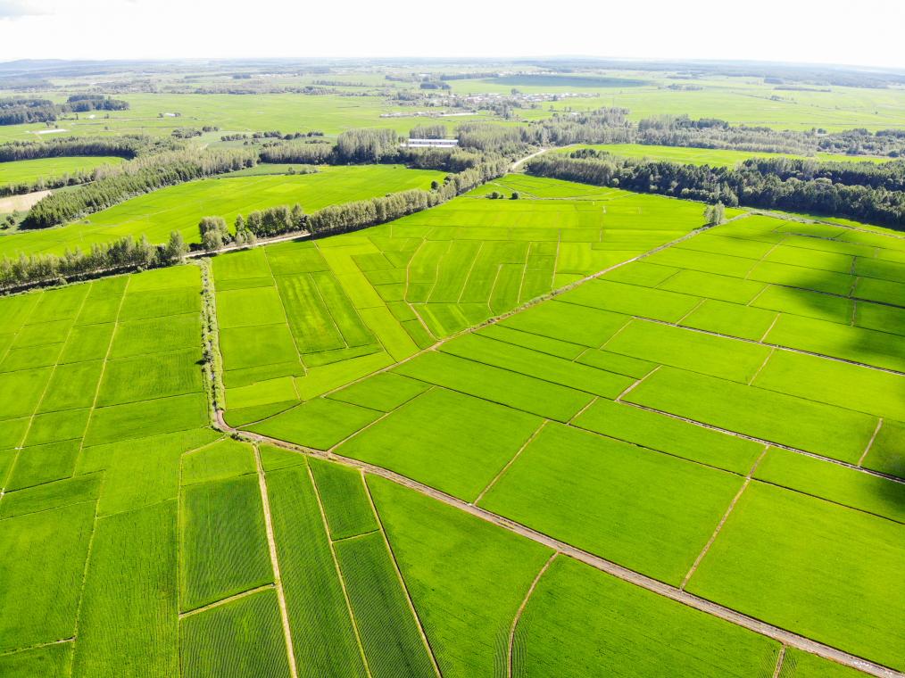 2022年7月,黑龍江省鐵力市山泉農(nóng)機農(nóng)民專業(yè)合作社高標準有機稻田(無人機照片)。新華社記者王松 攝