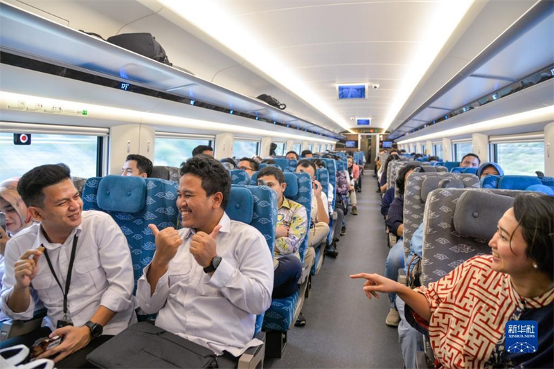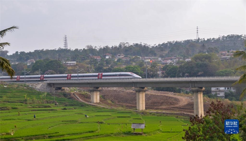 雅萬高鐵,依托復興號中國標準動車組先進成熟技術,主動適應印尼當?shù)剡\行線路條件,融合印尼本土文化,是中國高鐵向世界展示的“新名片”。