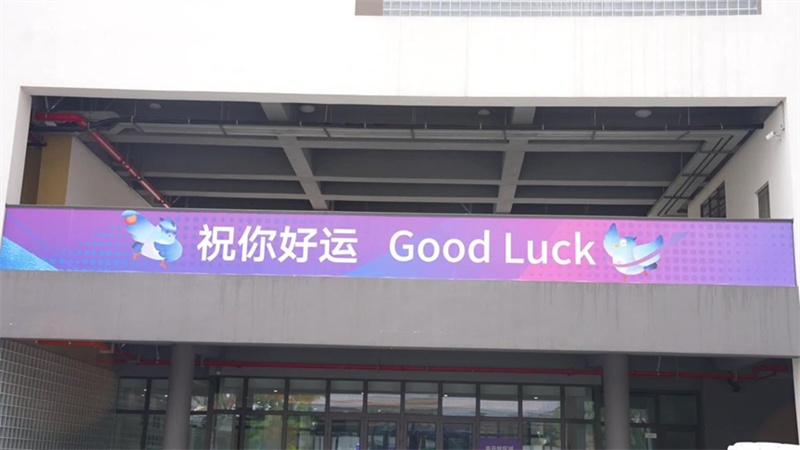 亞殘運(yùn)村居服中心門口,單腳站立的飛飛雕像翩翩起舞,成為大家格外喜愛的打卡點(diǎn)。不遠(yuǎn)處,飛飛立牌用中英雙語(yǔ)向運(yùn)動(dòng)員們發(fā)出問候,“歡迎運(yùn)動(dòng)員回家”。居服中心內(nèi),工作人員在白板上畫出了飛飛坐著輪椅參加比賽以及在水中游泳競(jìng)速的場(chǎng)景,還有杭城的標(biāo)志性元素荷花和荷葉。賽時(shí),這些白板上將會(huì)每日更新天氣、溫馨提醒、交通信息、失物招領(lǐng)等實(shí)用信息,為運(yùn)動(dòng)員們帶來(lái)便利。