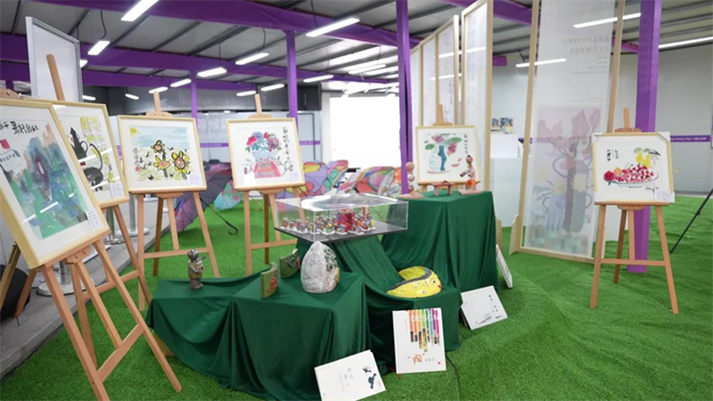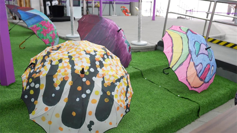 亞殘運(yùn)場(chǎng)館、中國(guó)元素、飛飛形象、杭城美景……這些畫作和手工制品內(nèi)容豐富、形態(tài)各異,有各類繪畫、傘面彩繪、盤繪、剪紙、黏土制品等等,鮮亮的色彩搭配相當(dāng)搶眼,讓人一看就心情愉悅。