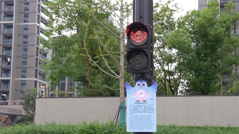 在亞殘運(yùn)村的主干道拾久街邊,曾經(jīng)火遍杭城的“三小只”造型交通信號(hào)燈,如今換上了新裝,可愛的飛飛接替了“三小只”的位置,在路口“站崗”。紅綠變化間,飛飛雙翼展開、振翅翱翔,格外引人注目。