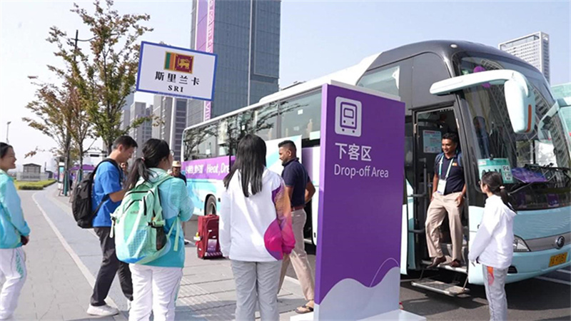 今天(10月17日),當(dāng)斯里蘭卡代表團(tuán)和印度代表團(tuán)的運(yùn)動(dòng)員們抵達(dá)亞殘運(yùn)村的時(shí)候,歡迎中心里的工作人員和志愿者們都已經(jīng)做好了準(zhǔn)備。從運(yùn)動(dòng)員們下車的一刻開(kāi)始,就已經(jīng)“回到了家”。